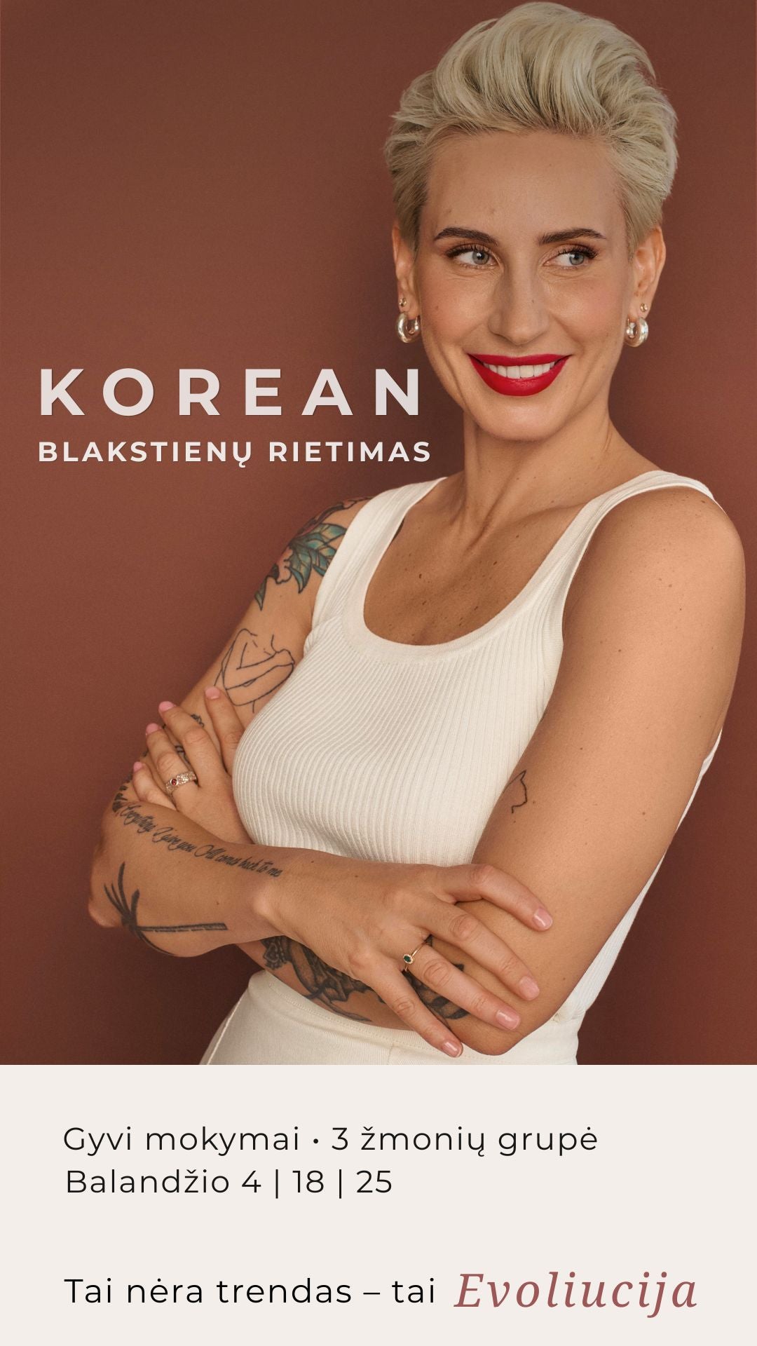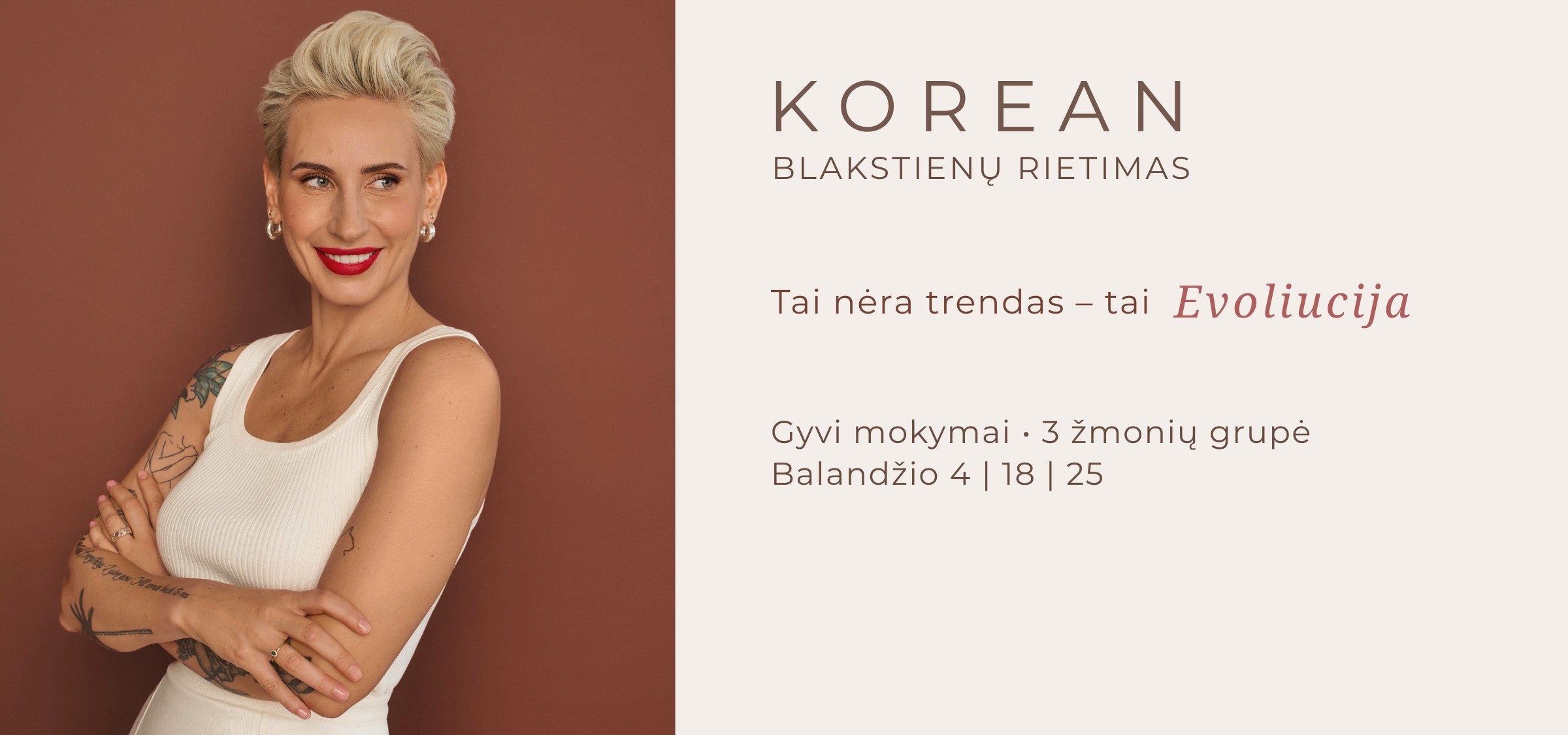 Esu viena pirmųjų Lietuvoje, pradėjusių atlikinėti korėjietišką blakstienų rietimo techniką. Visa sukaupta praktinė patirtis natūraliai persikėlė į gyvus mokymus, kurie startavo rudenį ir sulaukė didelio meistrių susidomėjimo bei labai gerų atsiliepimų.