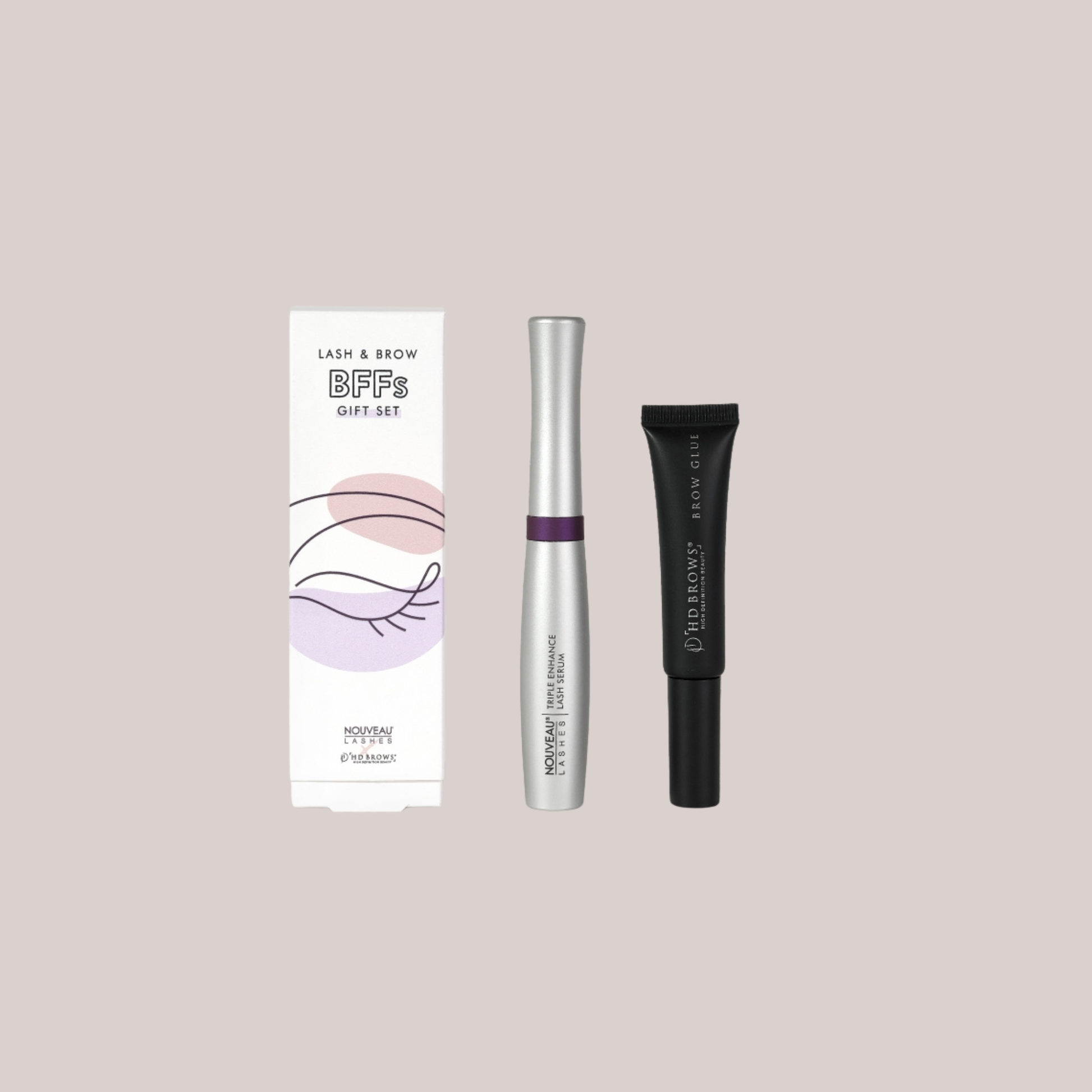Rinkinį sudaro Brow Glue (pasirinkto atspalvio), Triple Enhance Lash Serum ir dovanų dėžutė.